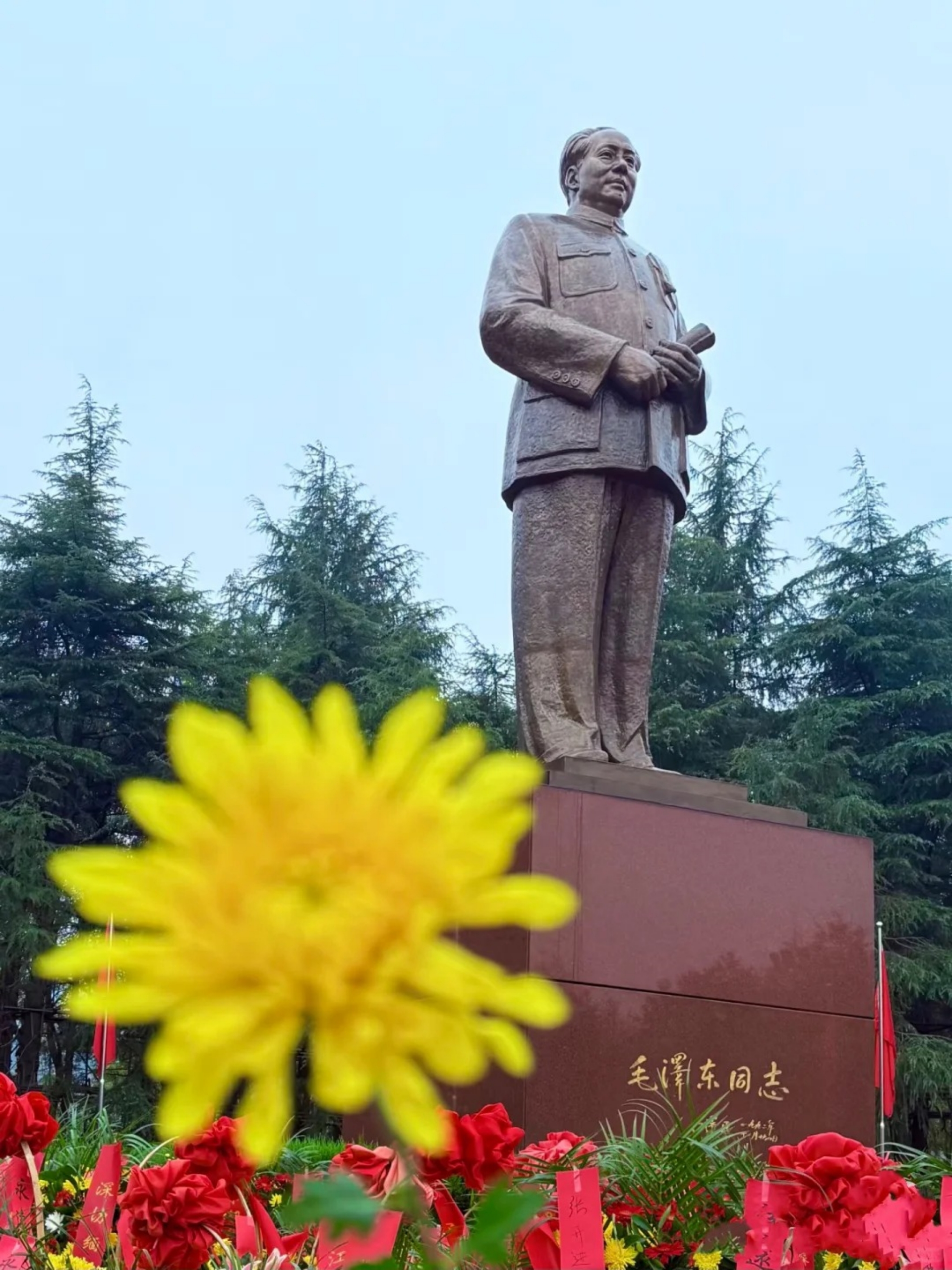 前往【毛主席广场】瞻仰主席铜像,缅怀伟人丰功伟绩,永远怀念毛主席,集体佩戴红领巾、佩戴毛主席徽章在主席铜像前举行庄严肃穆的瞻仰仪式以表敬仰怀念之情, 也可集体统一向主席铜像敬献花蓝(自主自愿表达,费用自理)