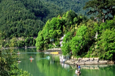游览:桐庐老牌景点--《红石湾》(门票+游船费已含)桐溪秘境游船,龙隐洞天)集山、水、林、洞于一体,休闲、度假、观光、游乐一条龙服务的综合性休闲旅游景区,主要有乘船游览-桐溪古河道;探秘龙隐洞府;儿童游乐区,了解刘秀和钱王的的历史故事。
