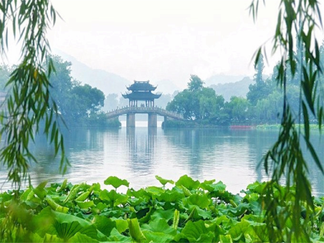早餐后游览【杭州西湖】(无门票):漫步苏堤,途经长桥、观保俶塔、雷峰塔。游【花港观鱼】(无门票,游览时间约60分钟):御碑亭、大草坪、红鱼池、牡丹园、孔雀园、密林、花港。
