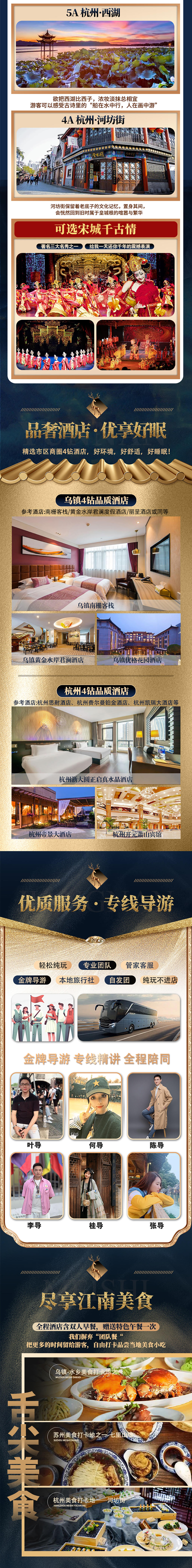 •门 票: 行程中注明需要另行支付的自费景点(乌镇东栅100元/人,宋城景区以及宋城千古情表演联票320元/人,西湖游船60元/人)。