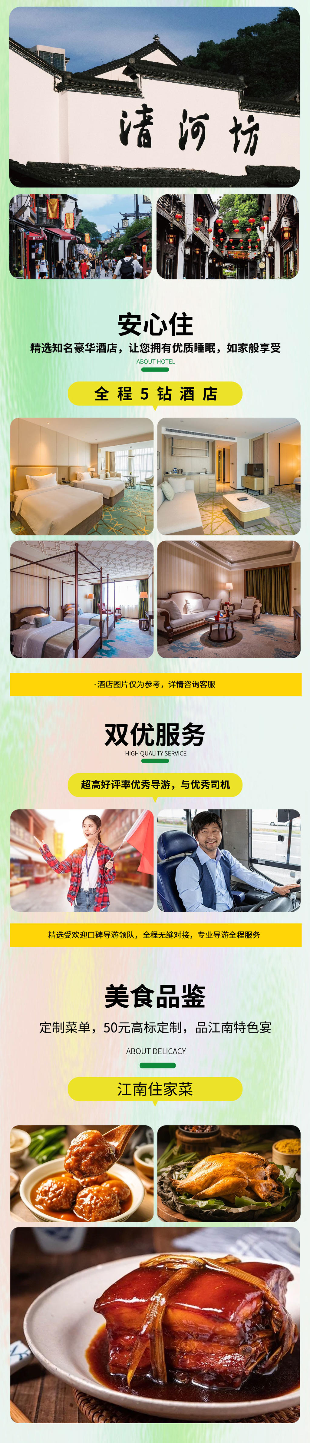 •住宿安排:全程5鉆酒店,一晚乌镇豪华5鉆客栈