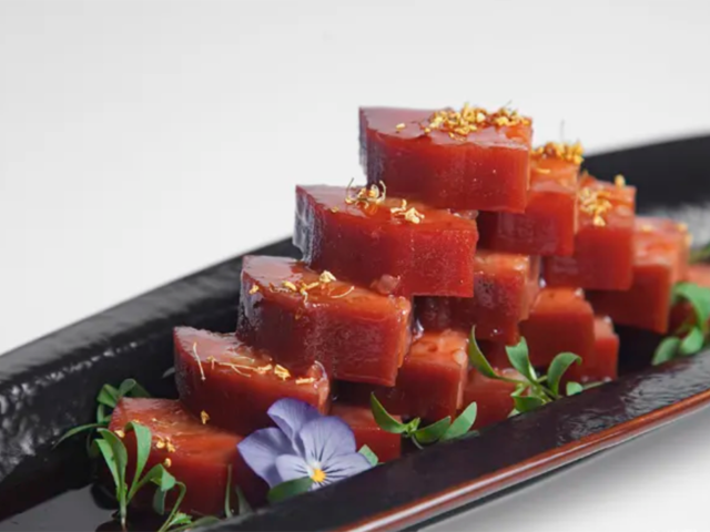 锦记糕点铺:定胜糕定胜糕谐音“定升高”,状若荷花,五个雪白的花瓣中央点缀了红绿色的果脯丝。里面是豆沙馅,中间混有少量白糖和桂花,味道香糯可口,甜而不腻。