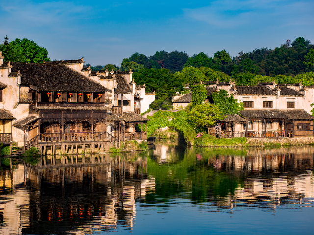 【宏村】建于南宋绍熙年间,至今有900余年。古宏村人独出机 杼, 开“仿生学”之先河, 规划并建造了古水系牛形村落和人工水系,形成当今世界历史文化遗产中的 一大奇观,造型奇特并拥有曼妙田园风光因此享有“中国画里的乡村”的美称。 宏村游玩线路:南湖—南湖书院—敬德堂—汪大燮故居(振绮堂)—月沼—乐叙堂—敬修堂—承志堂—德义堂—树人堂 —桃园居。中餐品尝民间徽味。(游玩时间约2小时)