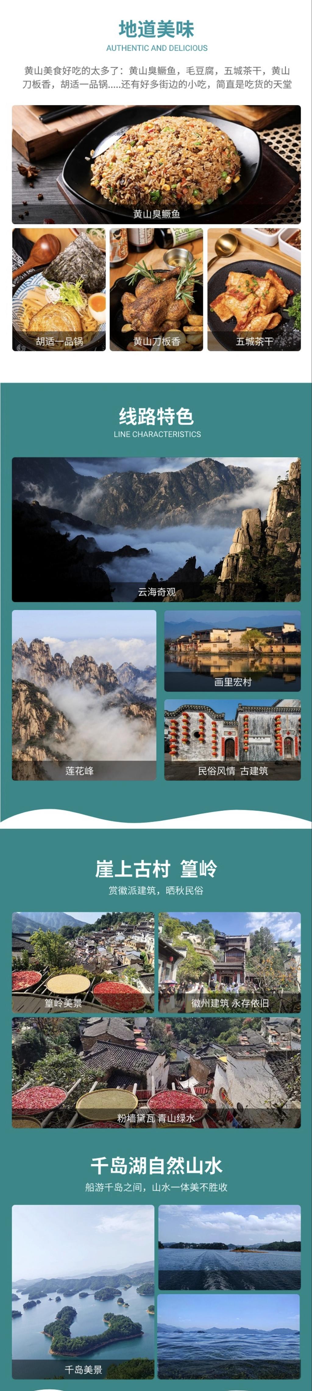•小 交 通: 景区内用车(黄山景交、篁岭索道,千岛湖游船)。