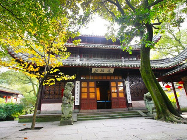 【寒山寺】:位于苏州西郊,已有一千四百多年的历史,因唐代诗人张继的名诗《枫桥夜泊》中“姑苏城外寒山寺、夜半钟声到客船”一句而闻名天下。寒山寺是有名的祈福胜地,每天来寺中撞钟进香、祈求平安的信徒络绎不绝。